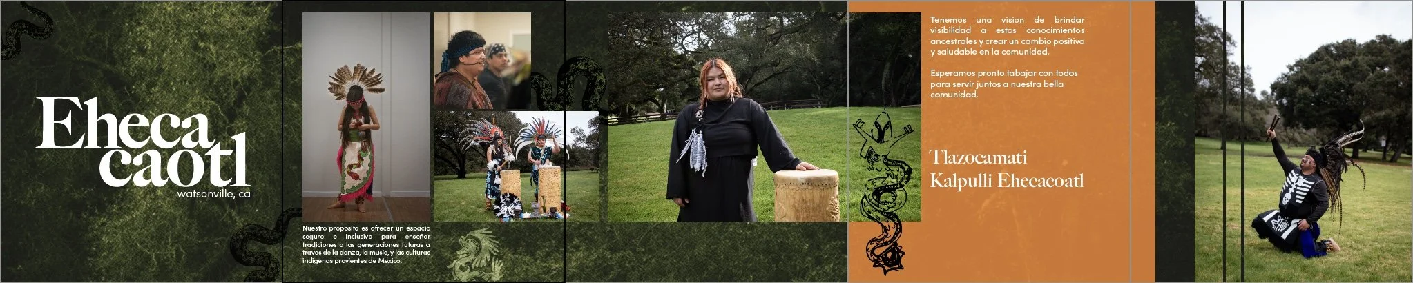 I lead social media and marketing for Ehecacotl, our local nonprofit Indigenous dance group. This was the first post I designed—a carousel introducing our members and sharing part of our vision.